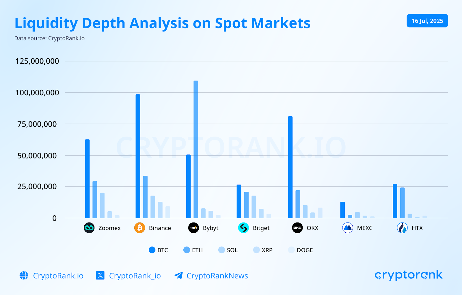 Research from CryptoRank indicates that Zoomex demonstrates strong order book depth across major assets: