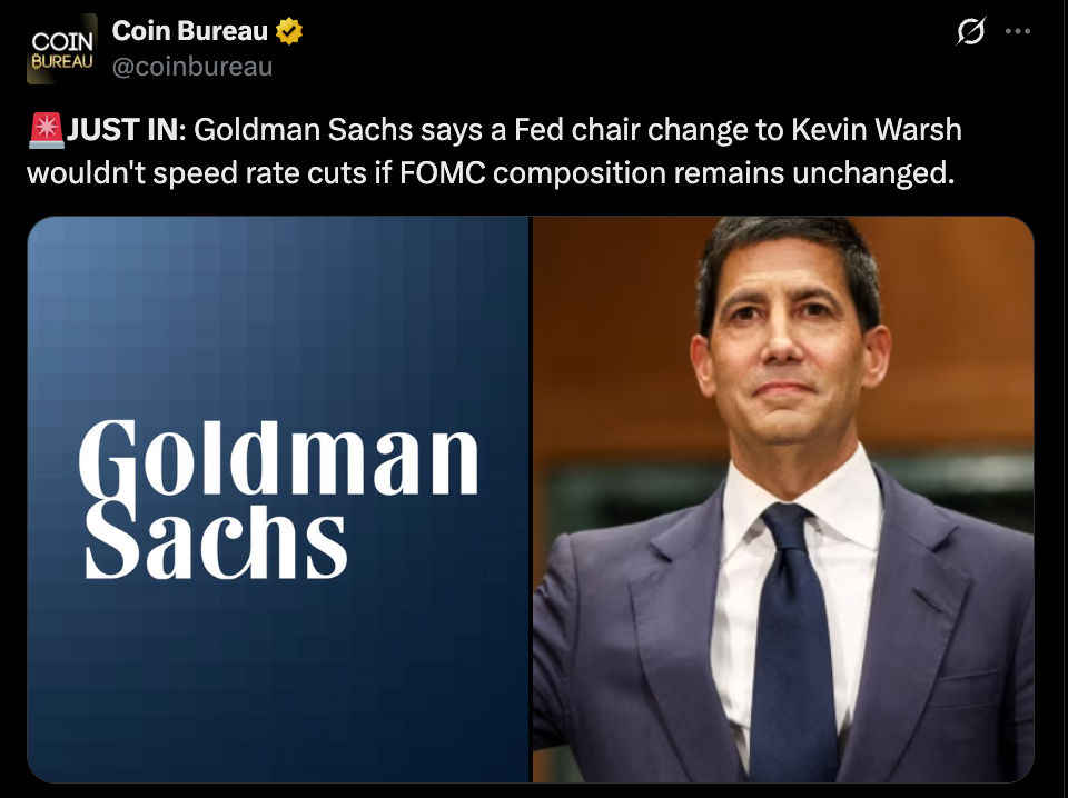 Markets spent a good part of early 2026 assuming a simple chain reaction, Trump picks a new Fed chair, rate cuts follow shortly after. It sounded clean, almost too clean, and Goldman Sachs never really bought into that idea from the start.