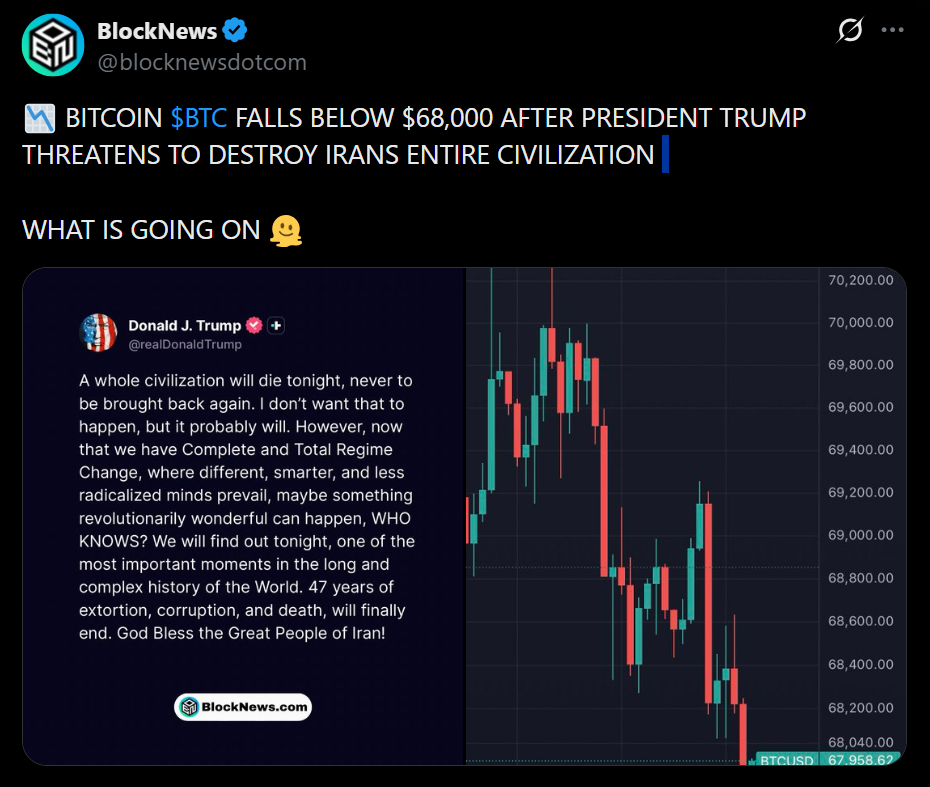 A big part of this hesitation comes from outside crypto itself. Ongoing geopolitical tensions, particularly in the Middle East, are keeping markets on edge. Mixed signals from global leadership aren’t helping either, uncertainty tends to push investors away from riskier assets.